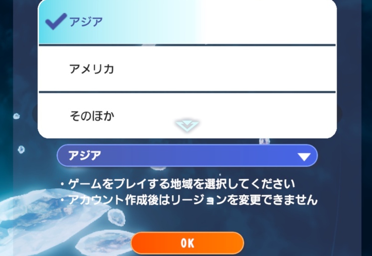 それ以外の地域を選択する場合、時差などの観点から他のプレイヤーと時間帯が合わないなどの可能性が出てきます。不都合が生じないように、日本在住であればアジア選択が無難です。