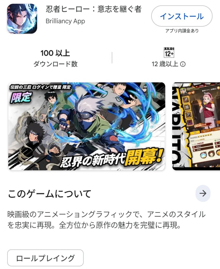 まさかこのアプリが非公式で違法なパクリゲームだとは知らずに、多くの人は大好きなナルトのゲームが出たんだと思ってプレイしちゃうと思います。