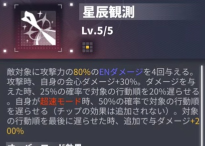 敵の行動順が50%未満の時に防御無視攻撃が可能になるため、ミストの行動遅延スキルと抜群のシナジーを発揮します。