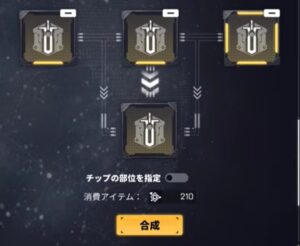 合成には1回につき「データ破片」を210個消費します。不要なチップを分解して得られる破片の量を考えると、合成は素材効率が非常に悪いと言わざるを得ません。