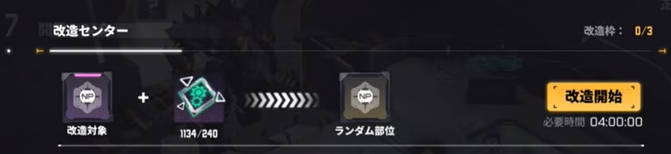 開発センターではキャラクターの配置ボーナスによってコストを大幅に削減でき、狙った部位のチップを作る際も成功率を高めることができます。素材を無駄にしたくない場合は、こちらでの「改造」がおすすめです。