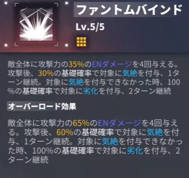 ハトリの特徴は、敵全員に気絶を付与できる第3スキル「ファントムバインド」です。
