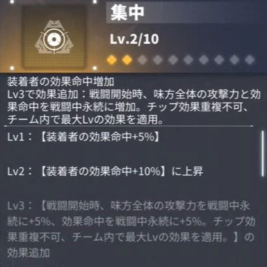 味方の強化を行いつつ、自身の効果命中を大きく底上げできます。