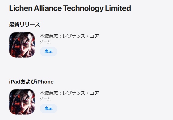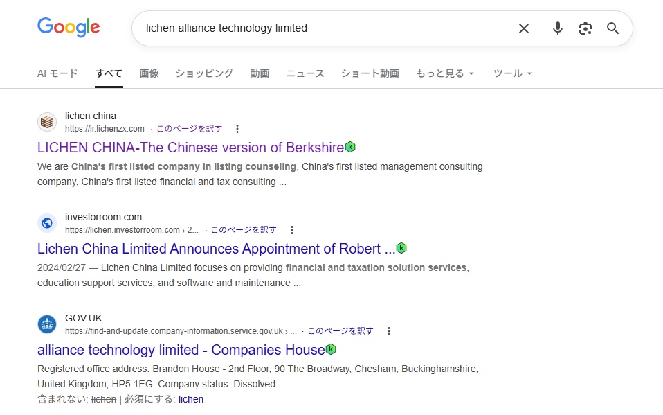 lichen alliance technology limitedという会社は、具体的にどのようなゲームアプリを開発しているのかなどをGoogleで調べてみましたが、公式ページが出てきませんでした。そのため、こちらの企業は最近法人設立をしたもので、Googleに出てこない可能性が高いと判断できます。
