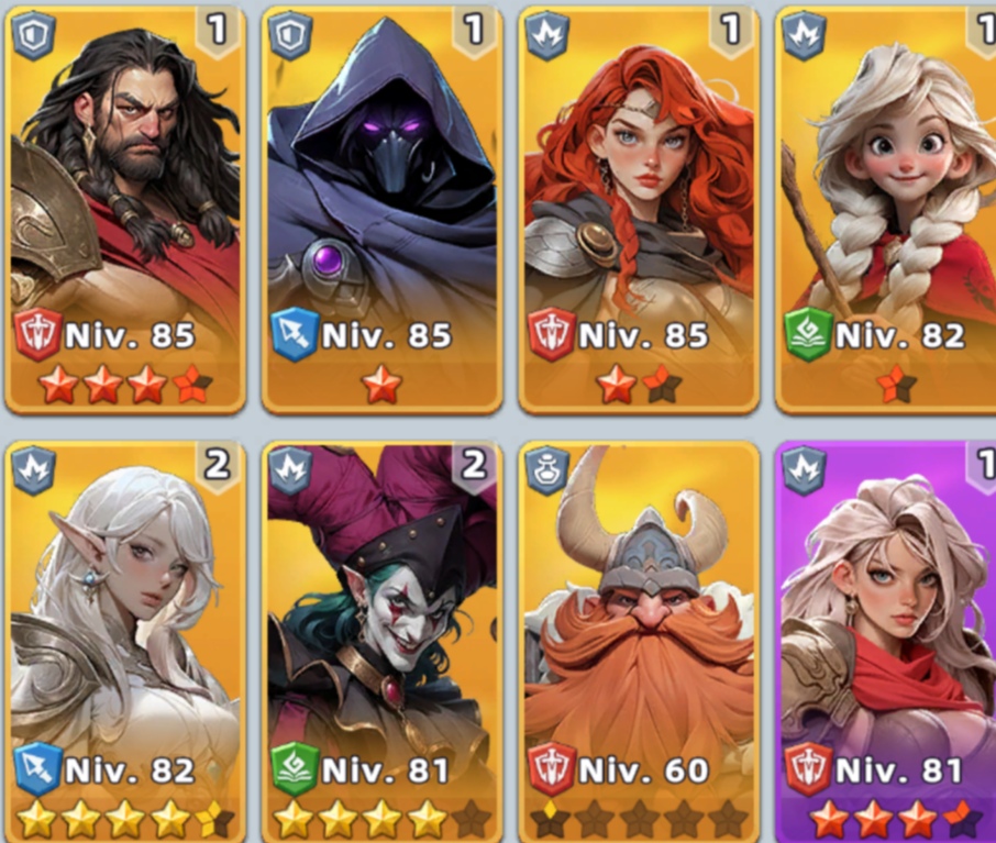 解放しているヒーローによって最適な編成は異なります。状況に合わせて最適化していきましょう。メインチームの編成に集中し、XP、スキル、装備で戦力を強化してください。URアイテムの製作を忘れず、古くなった緑や青の装備は分解しましょう。盾を持つタンク役を前列に配置し、後列にはアタッカー(戦士や魔道士が望ましい)を配置してください。