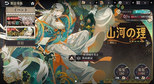 期間限定器霊募集では、指定された器霊の出現率が大幅にアップします。期間限定募集の新しい器霊は、一時的に「常設募集」には出現しませんが、期間終了後にラインナップに追加されます。