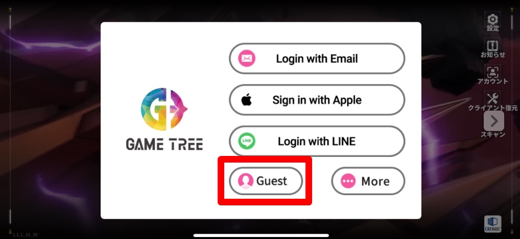 | ゲストログインをしてプレイ | インストールしたら、最初はゲストアカウントとしてログインしてください。 |
