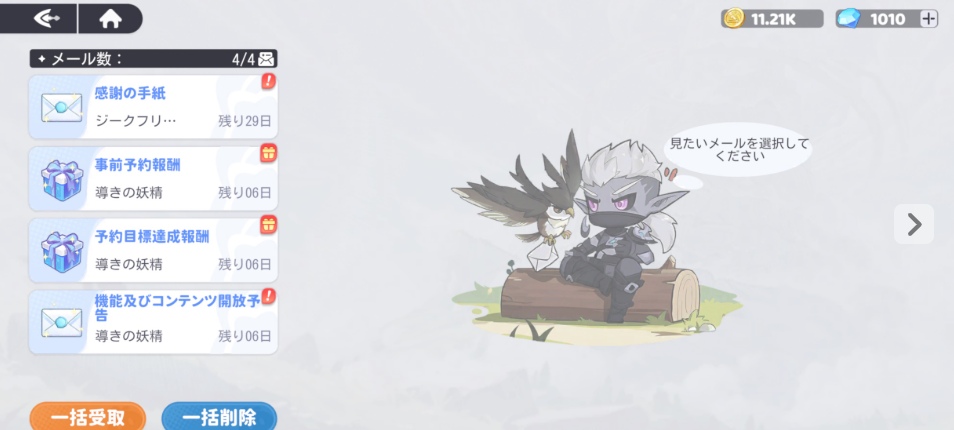 | 事前登録特典受取 | その他、ログボなど受け取れるものをすべて受け取りましょう。 |