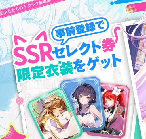 現状判明しているキャラクターです。ガチャ排出の最高レアリティはSSRで、全てURランクまで進化可能。限定衣装(スキン)もあります。2025年9月24日(水)から事前登録受付開始。事前登録することで、好きなSSRキャラを選んでもらえる「セレクト券」1枚とガチャ100連分、ミシェルの限定衣装がもらえます。