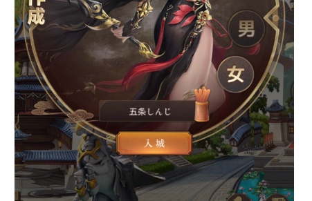 ゲームスタート ゲームをスタートしたらキャラクター作成。男女の性別と名前を決めて入城。